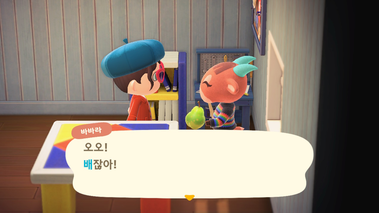 간식 먹으며 쉬엄쉬엄 하라는 의미에서 배를 건네준다.