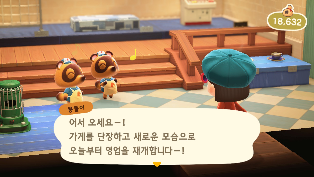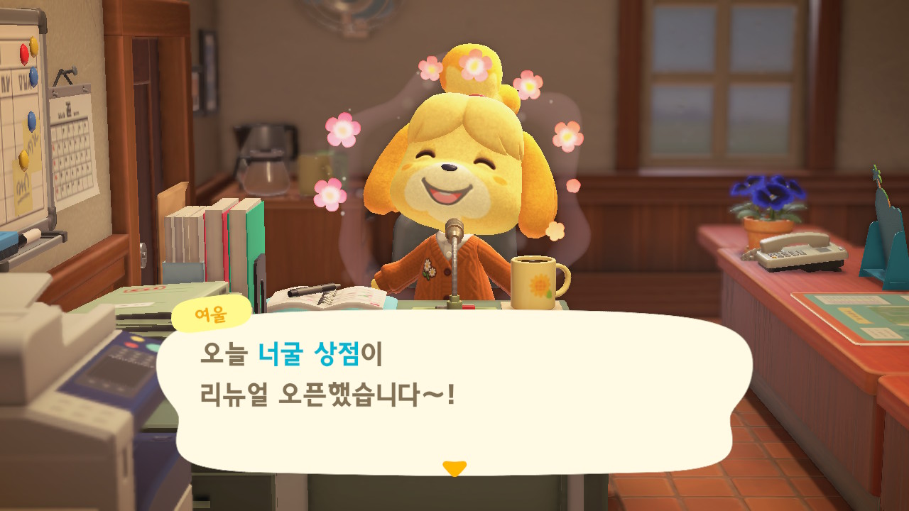 너굴 상점의 리뉴얼 소식을 방송으로 들을 수 있다.