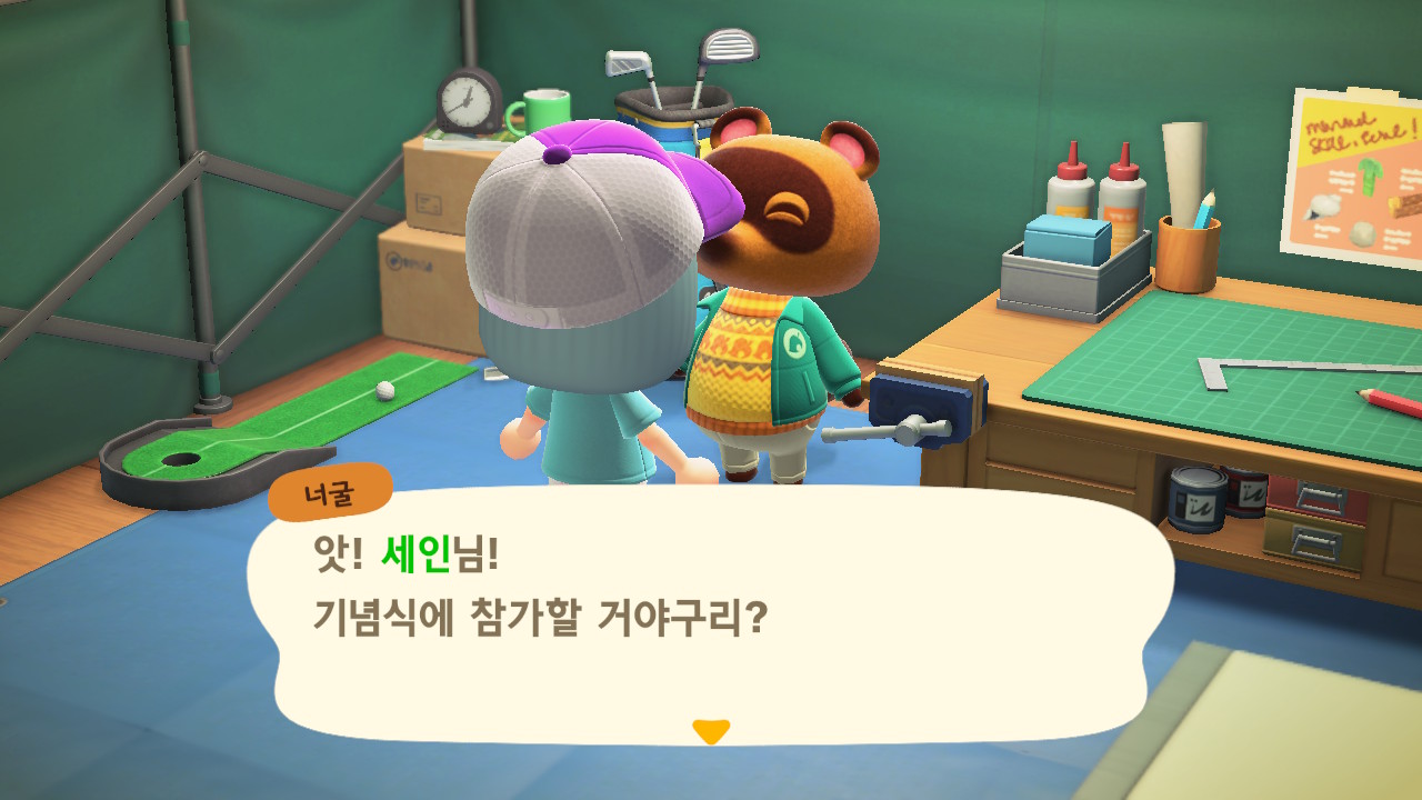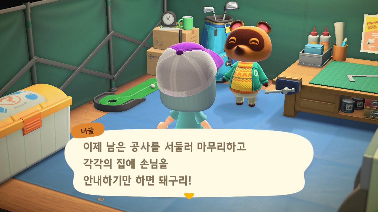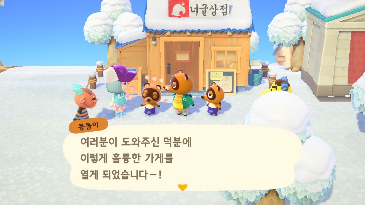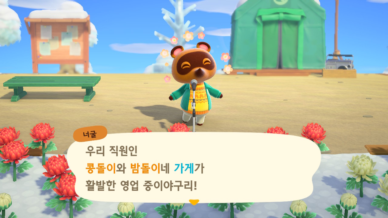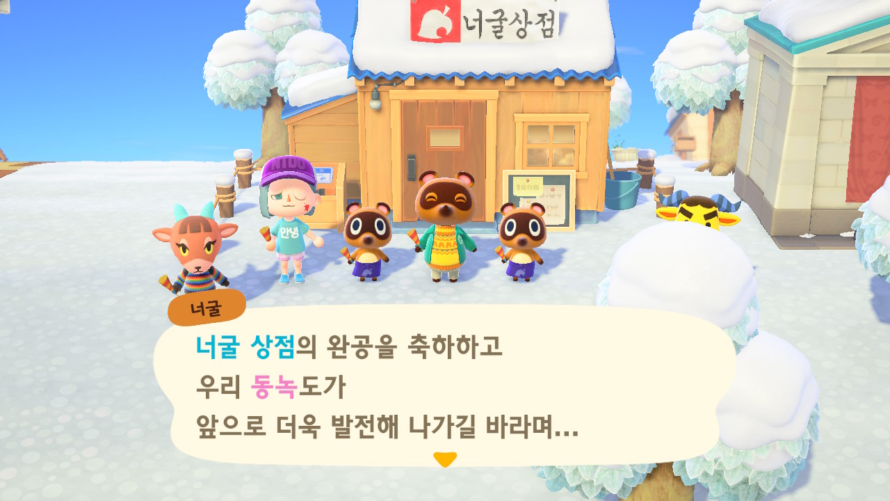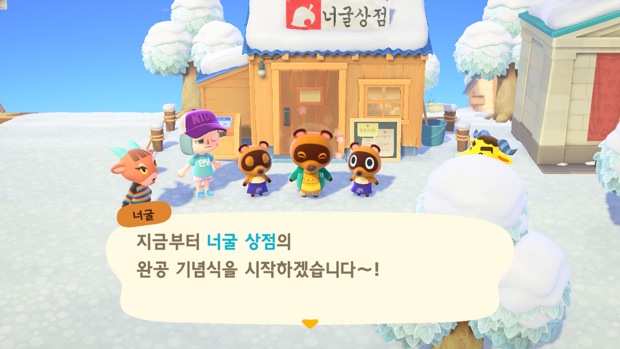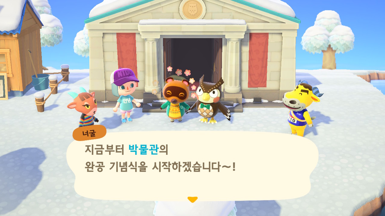 박물관과 가게가 완공되었다는 소식을 알려 주는 너굴.