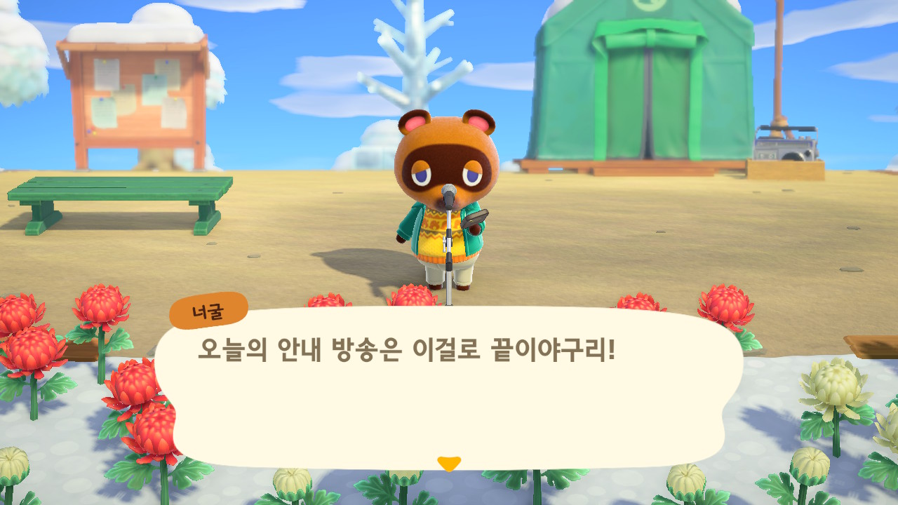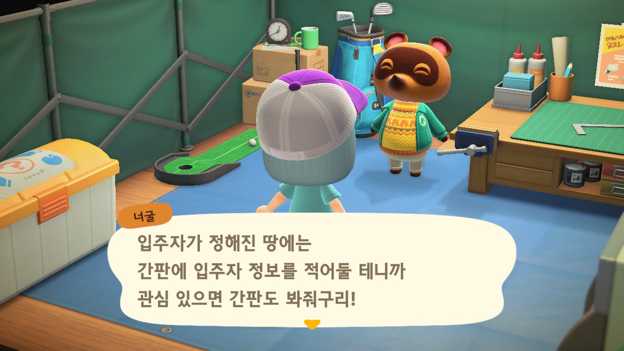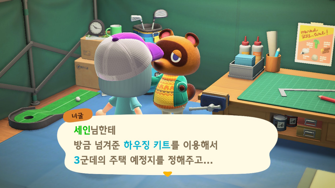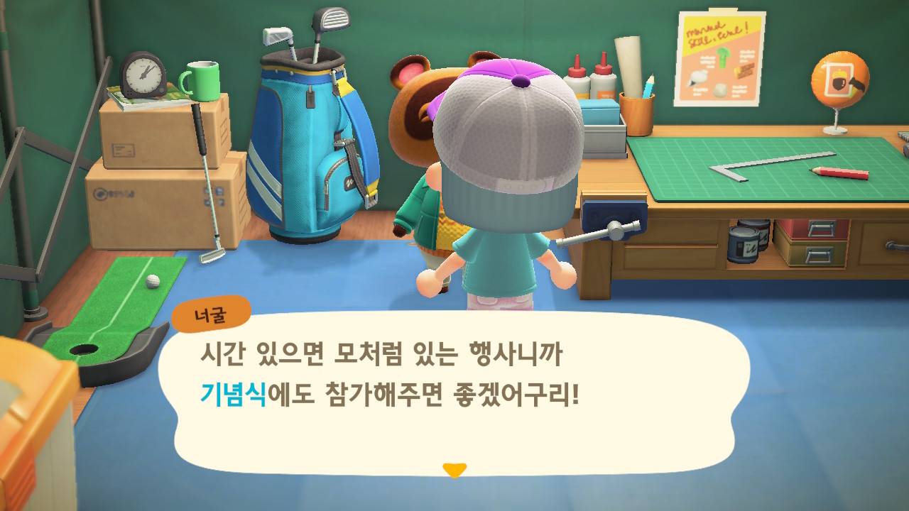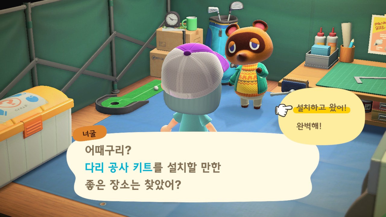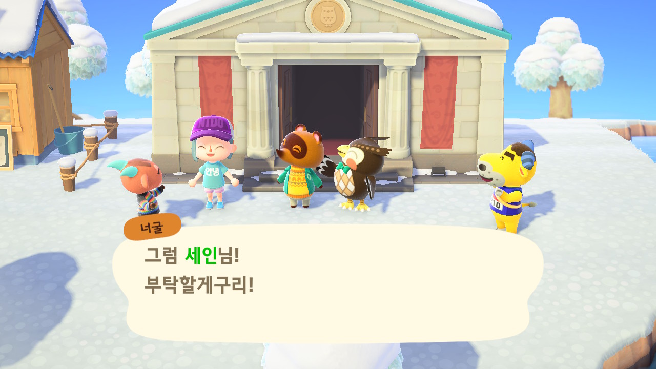 박물관과 가게가 완공되었다는 소식을 알려 주는 너굴.