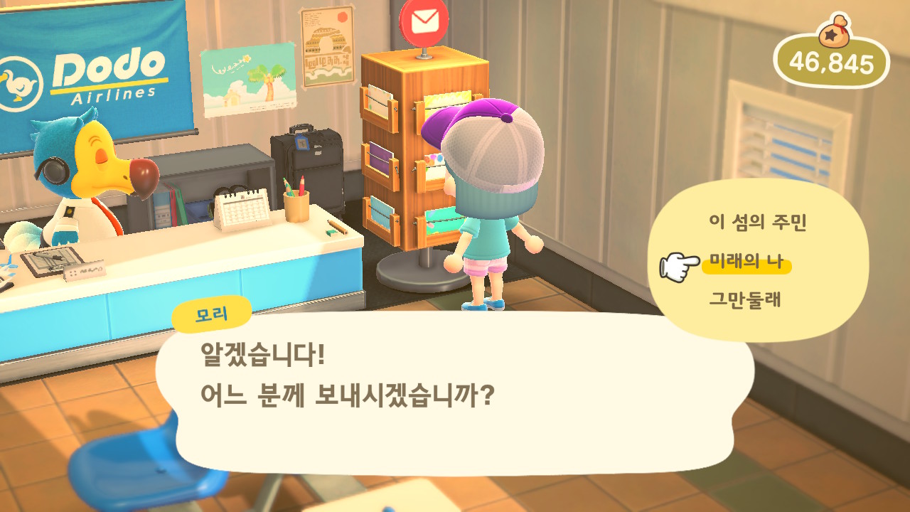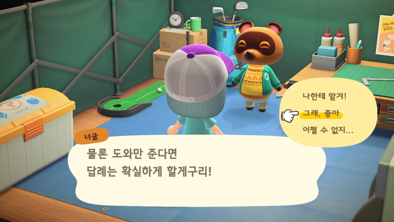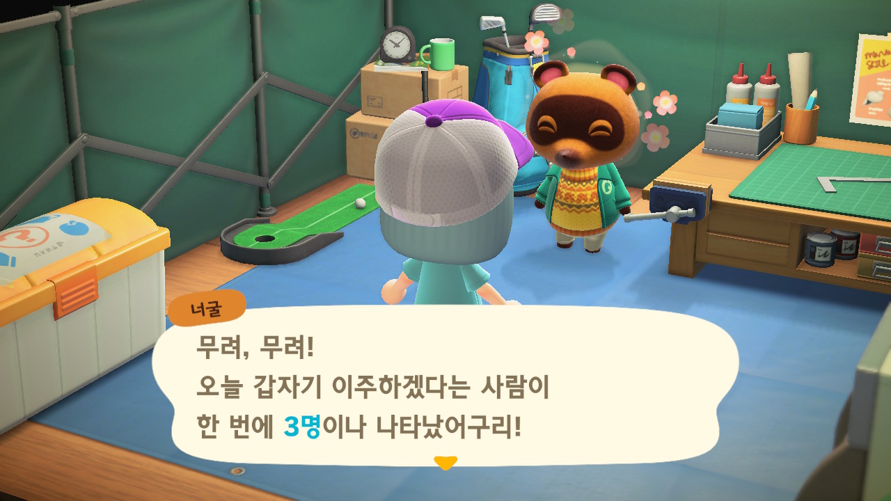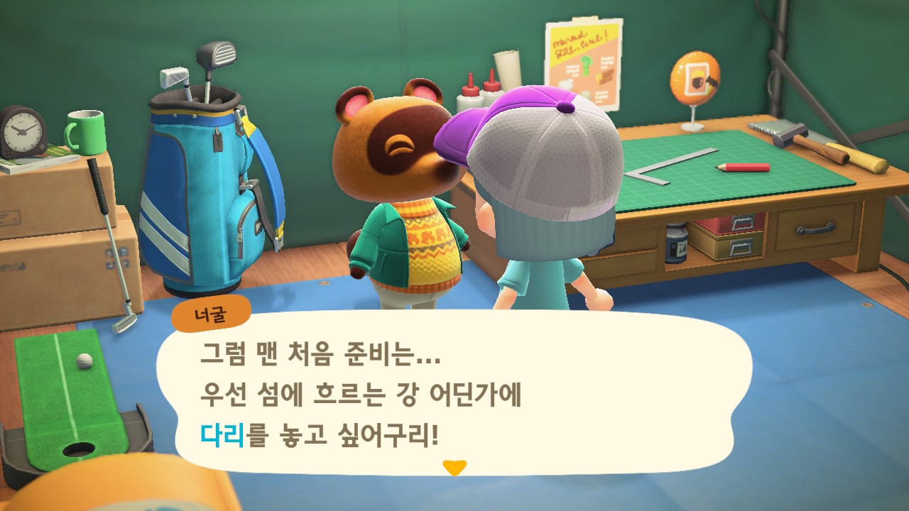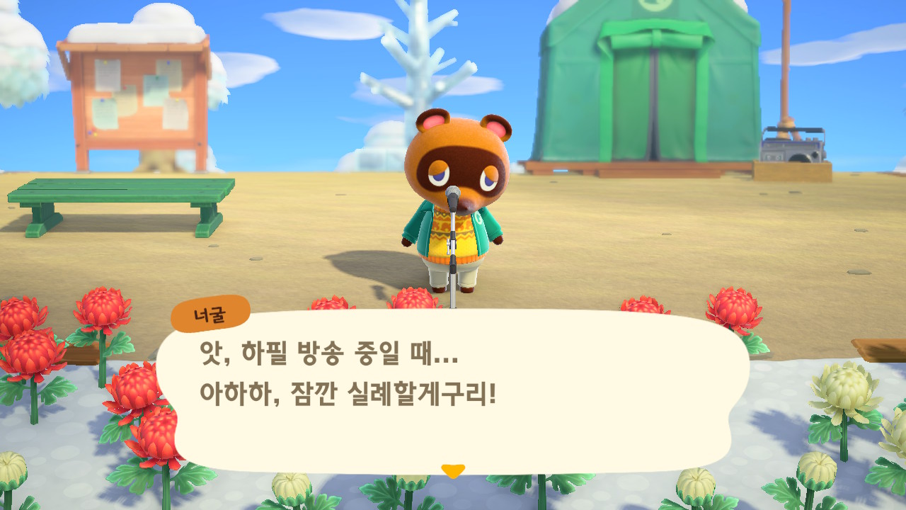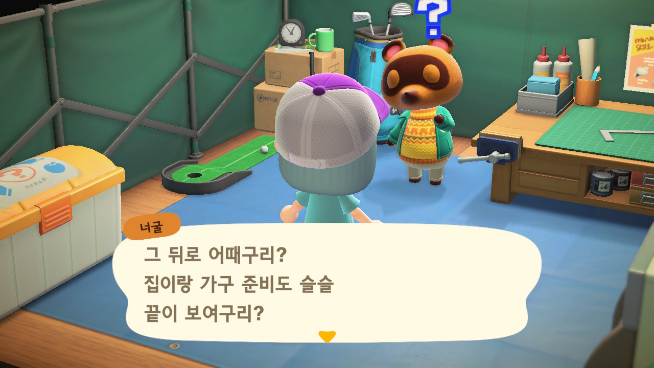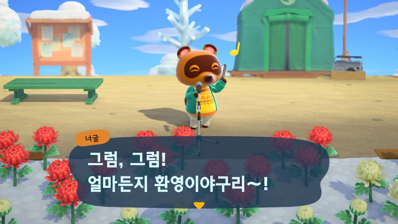 박물관과 가게가 완공되었다는 소식을 알려 주는 너굴.