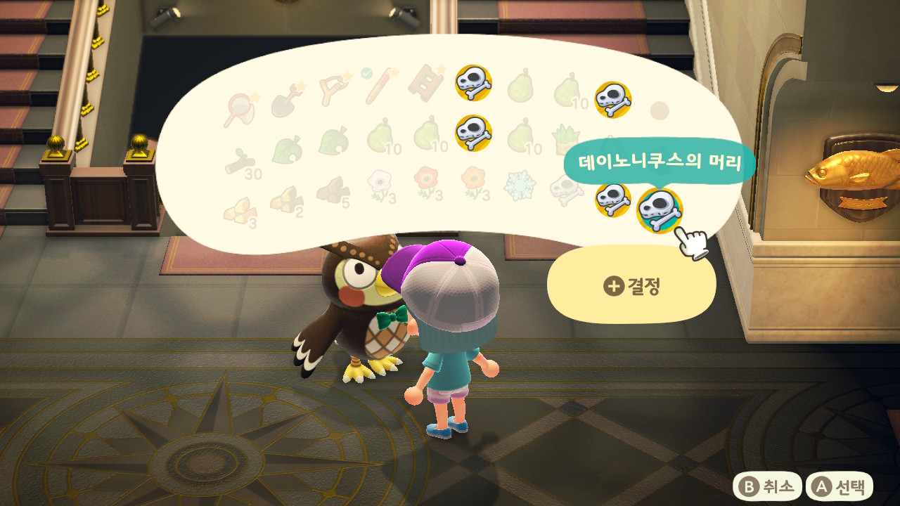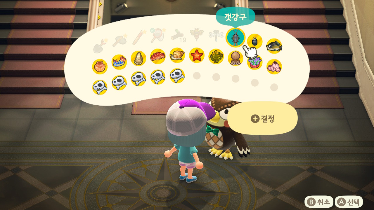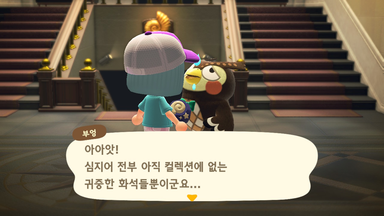 화석과 벌레, 해산물을 모두 부엉에게 넘겨주자.