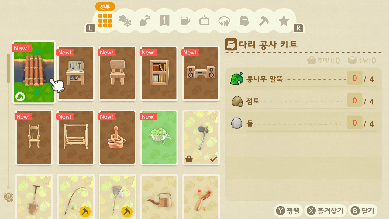 필요한 가구를 조달하기 위해 부족한 재료를 모아야 한다.