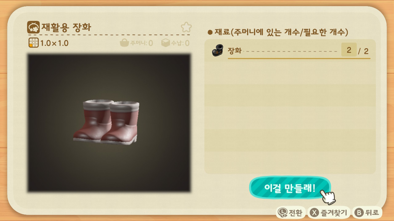 아까 낚은 장화를 이용해 신을 수 있는 장화를 만들어 주었다.