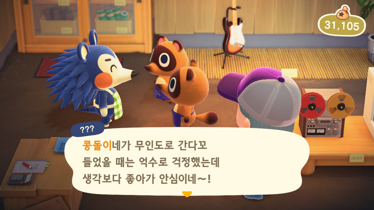 들어가면, 고순이와 대화를 하고 있는 너구리 형제를 볼 수 있다.