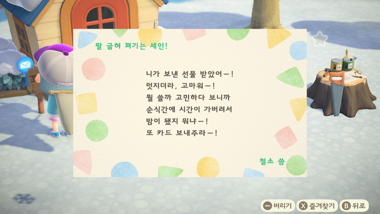 오늘의 동숲은 여기까지... 뭔가 이것저것 많이 한 것 같긴 한데, 그닥 보람차지는 않은 하루였다.