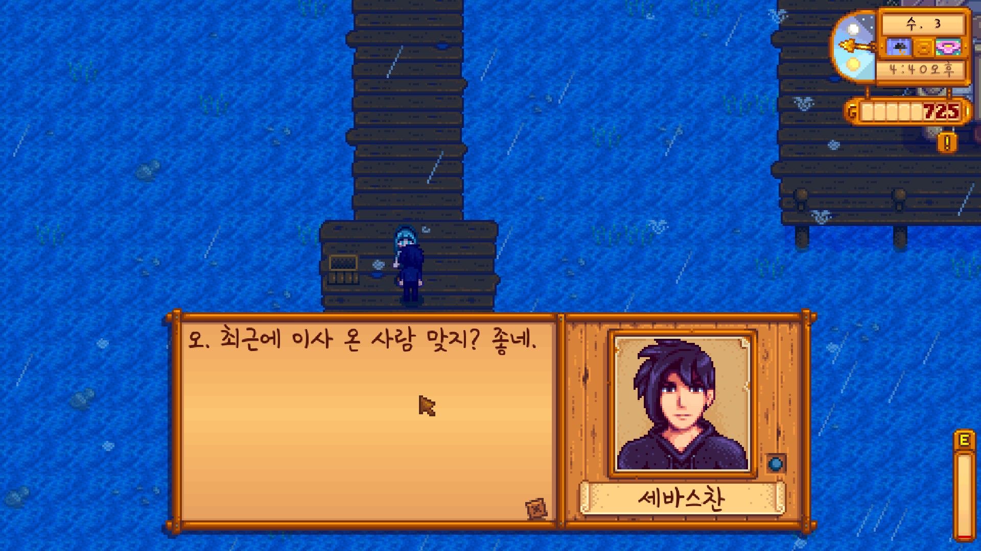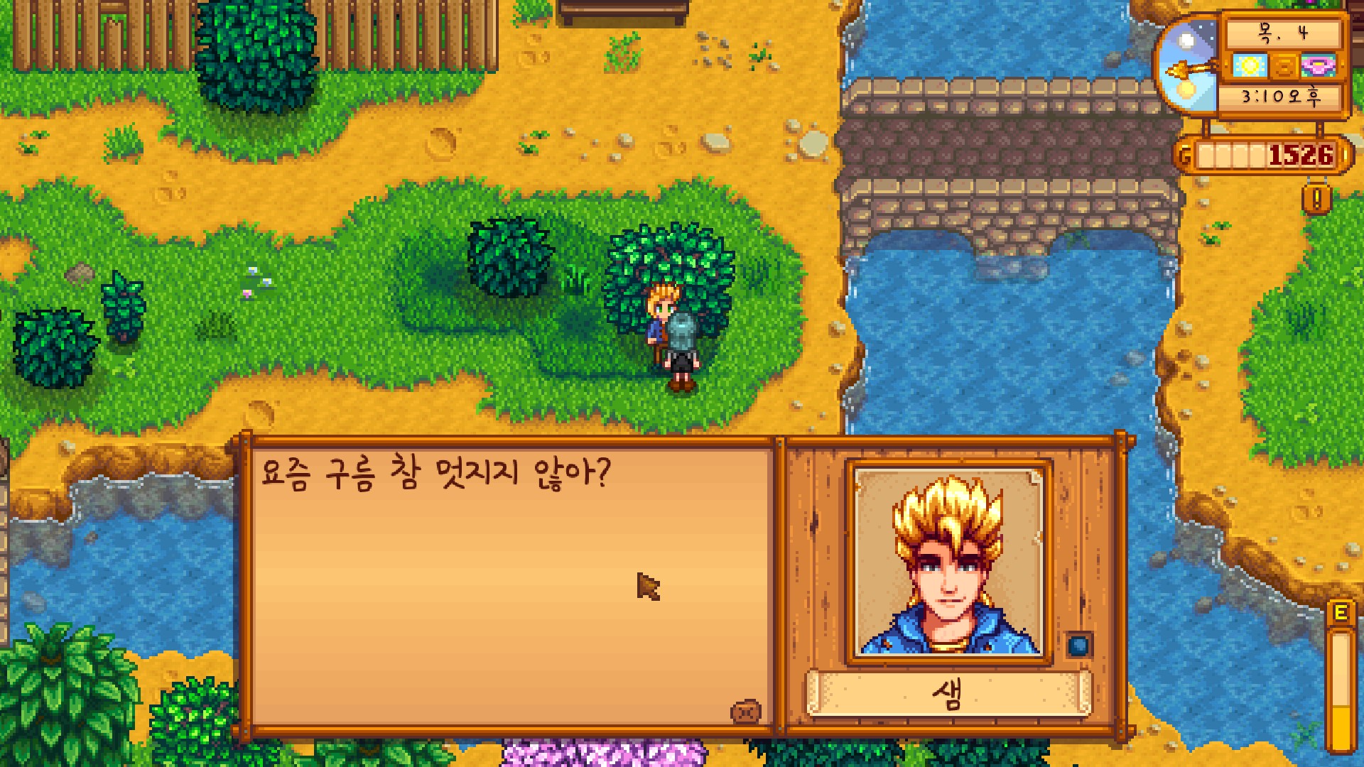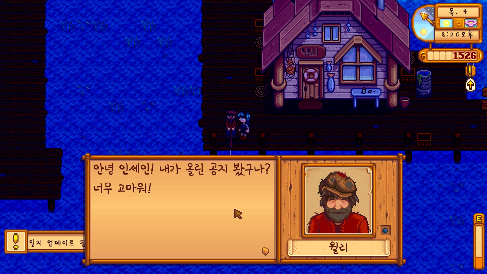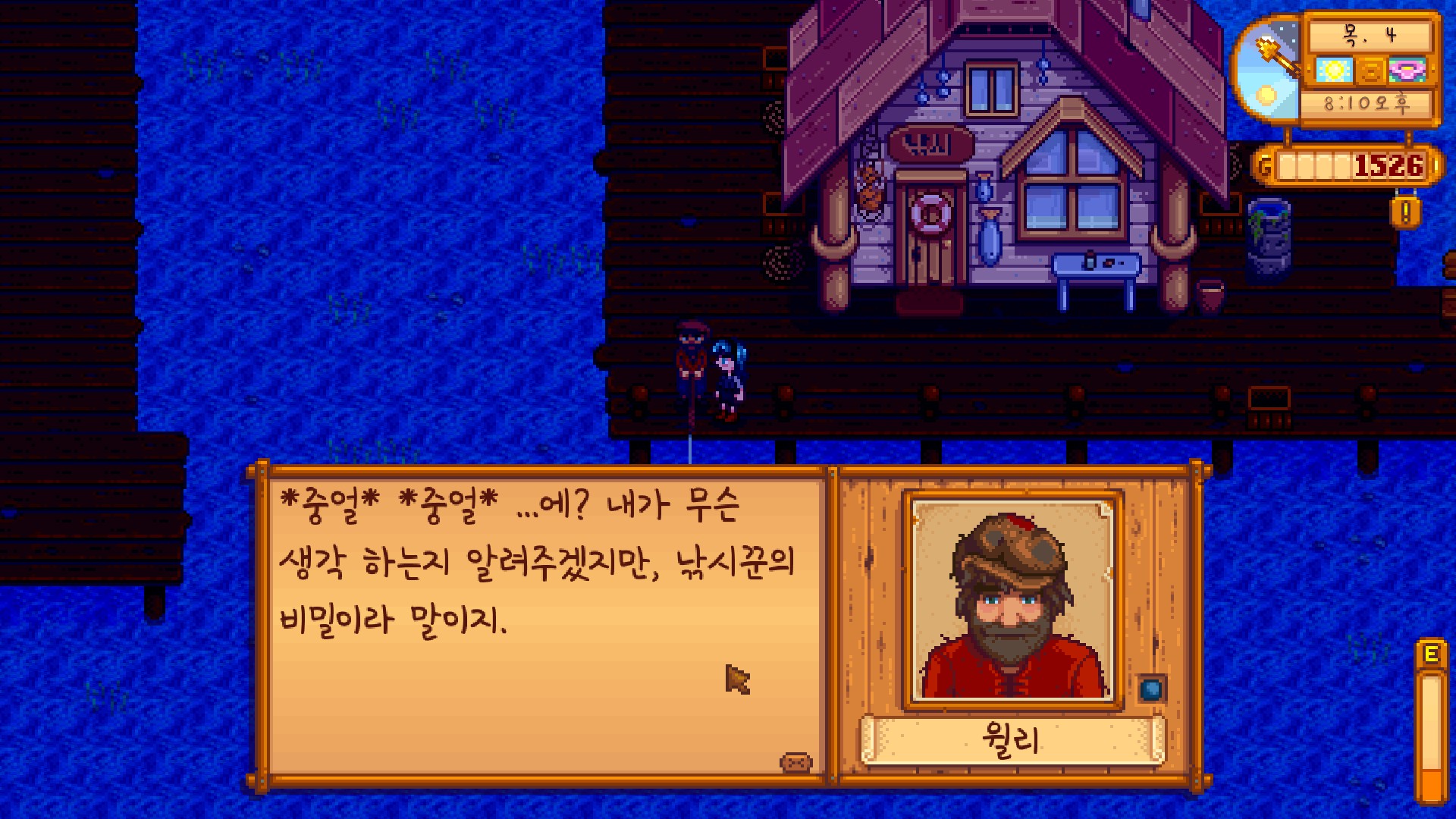 보상으로 135골드와 윌리의 호감도를 얻었다. 생각해 보니 말 많은 아저씨의 호감도 같은 거, 필요 없어!