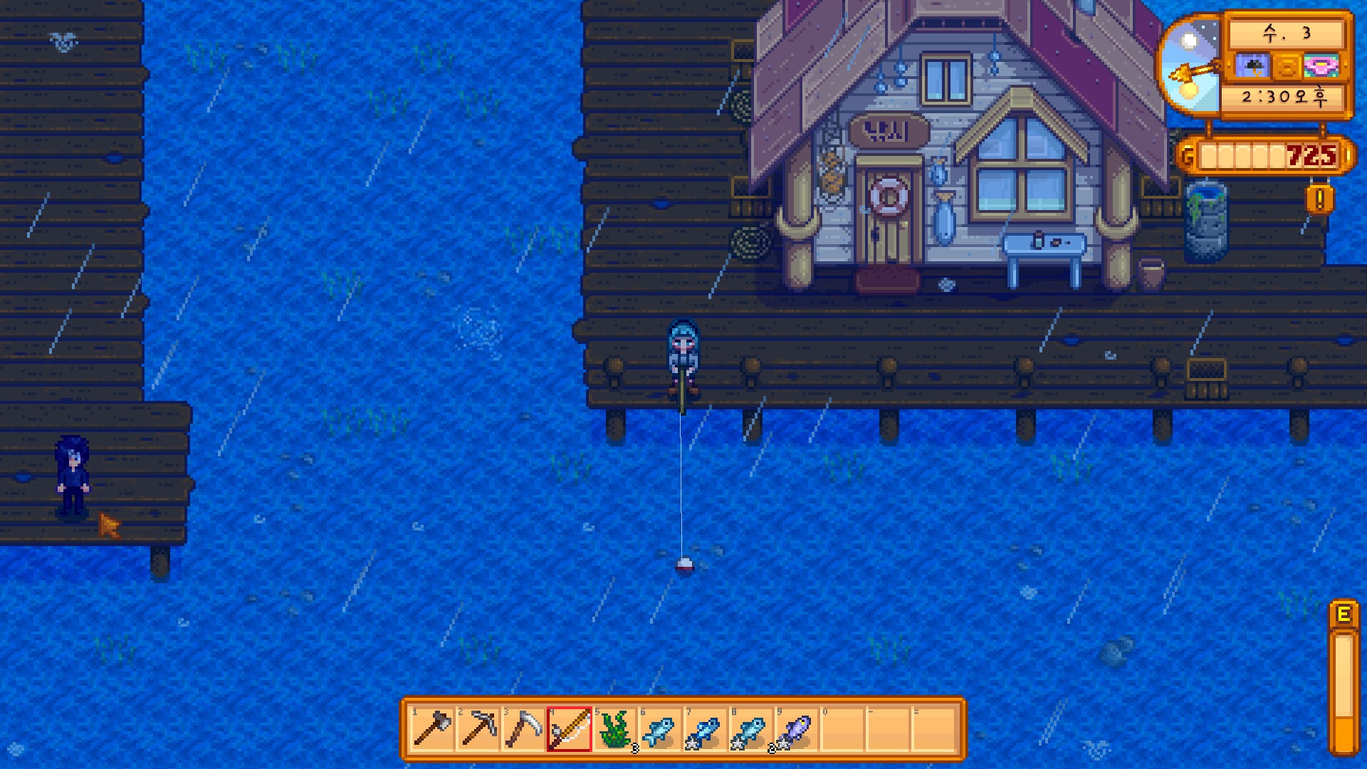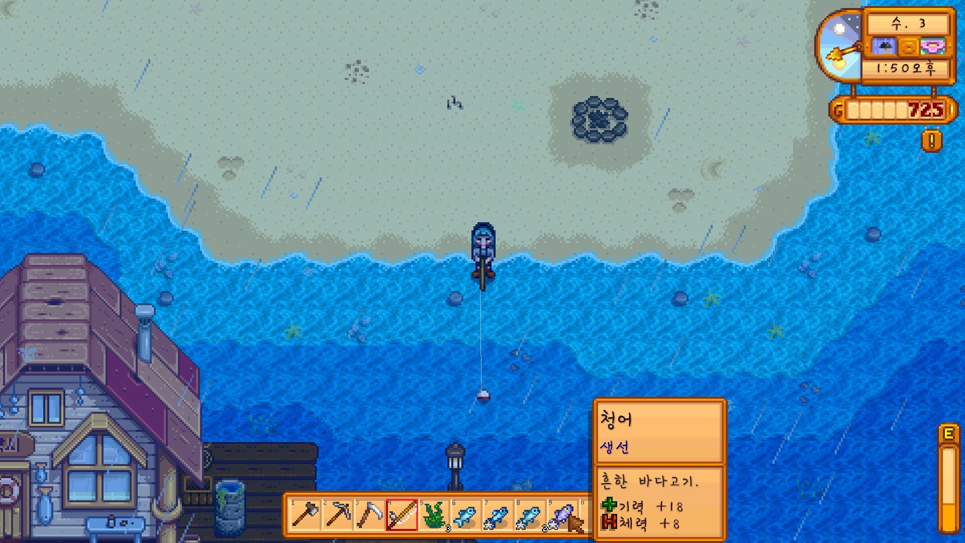 낚싯대를 한 번 던질 때마다 기력이 감소했는데, 정확히 몇이었는지 기억이 나지 않는다.
