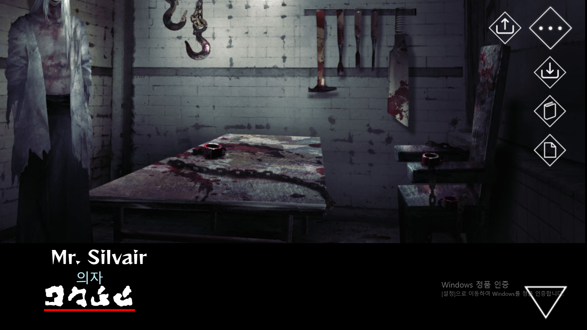 피칠갑이 된 수술대와 각종 도구, 그리고 고문 의자처럼 생긴 것이 있다.