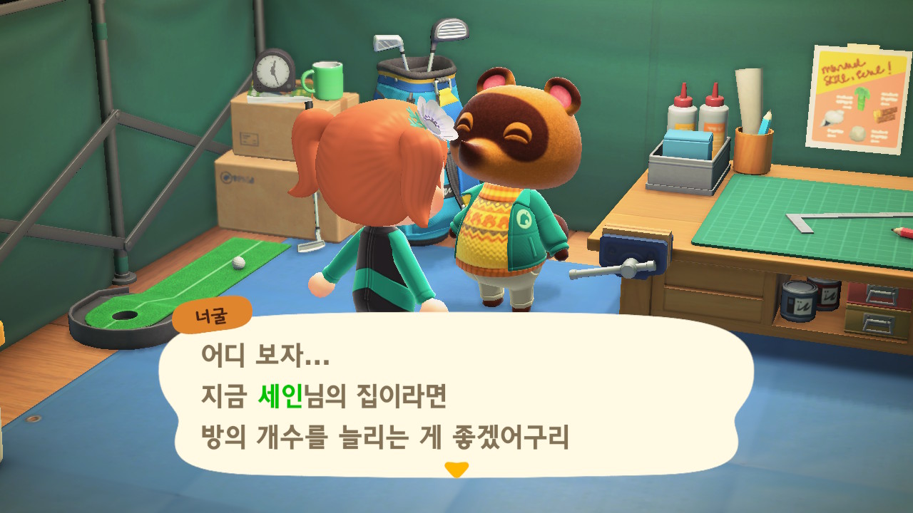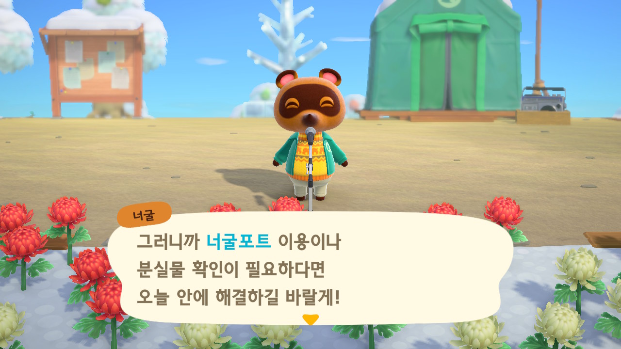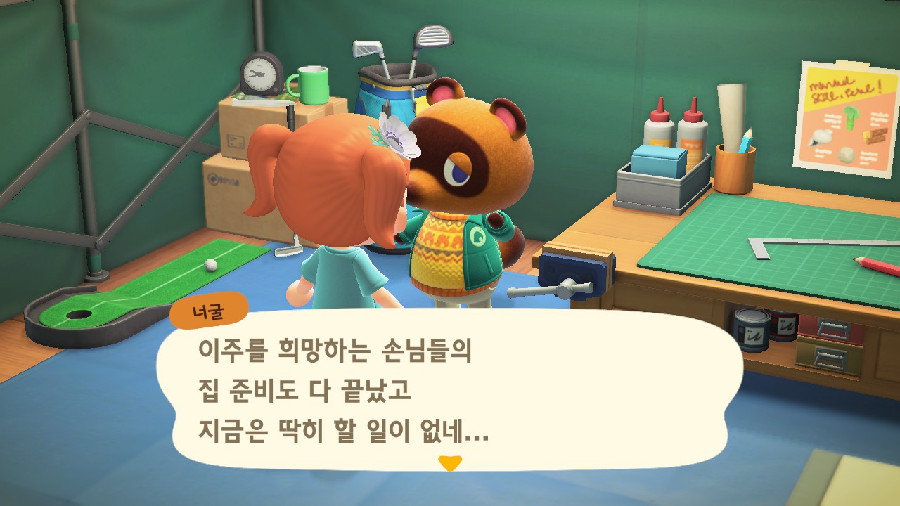 뭔가 일을 받고 싶어 너굴에게 말을 걸었으나 할 일이 없다는 너굴.