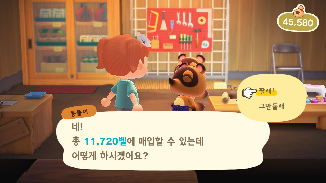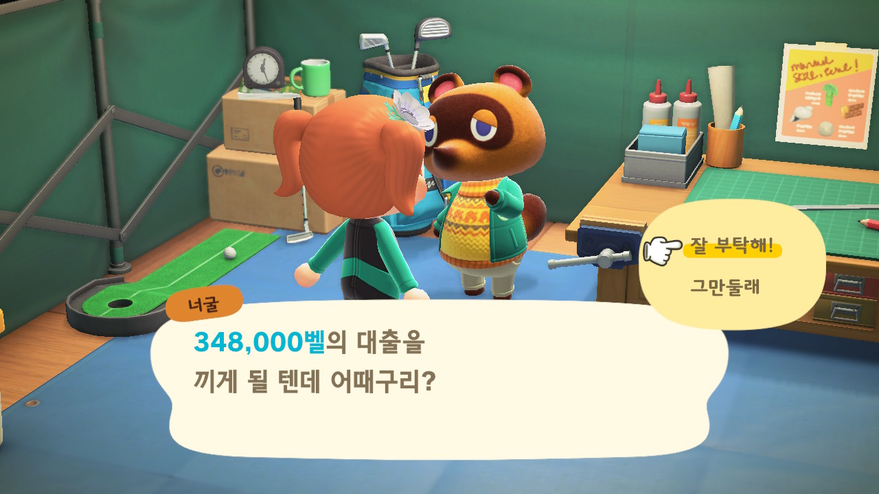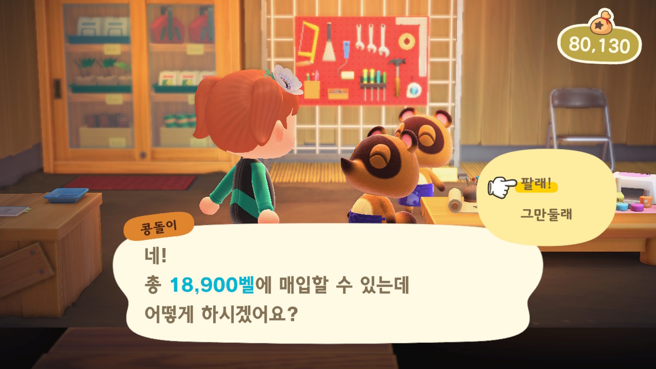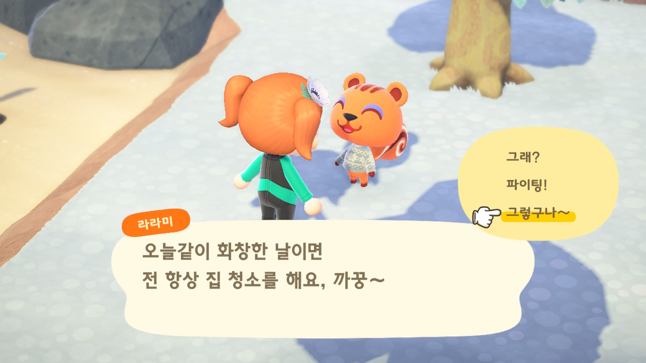 뭔가 일을 받고 싶어 너굴에게 말을 걸었으나 할 일이 없다는 너굴.