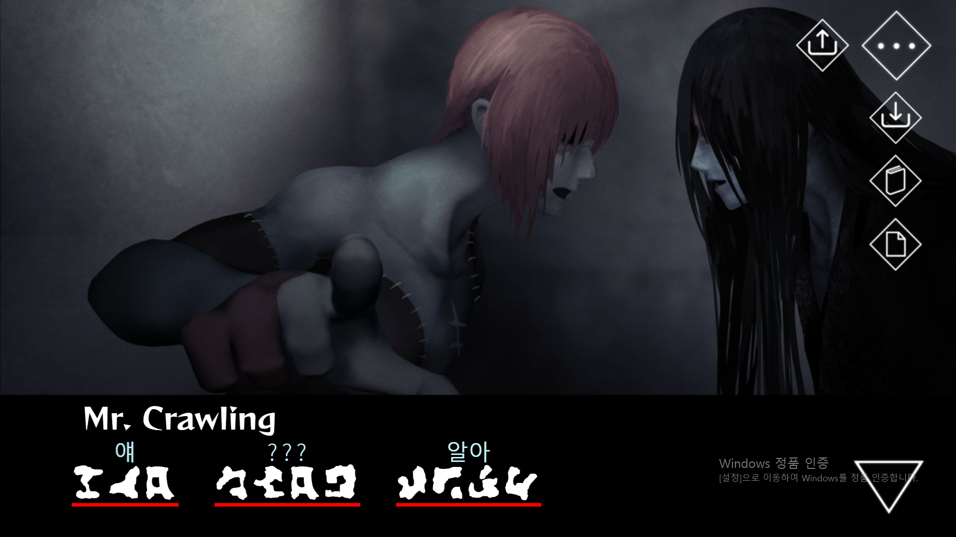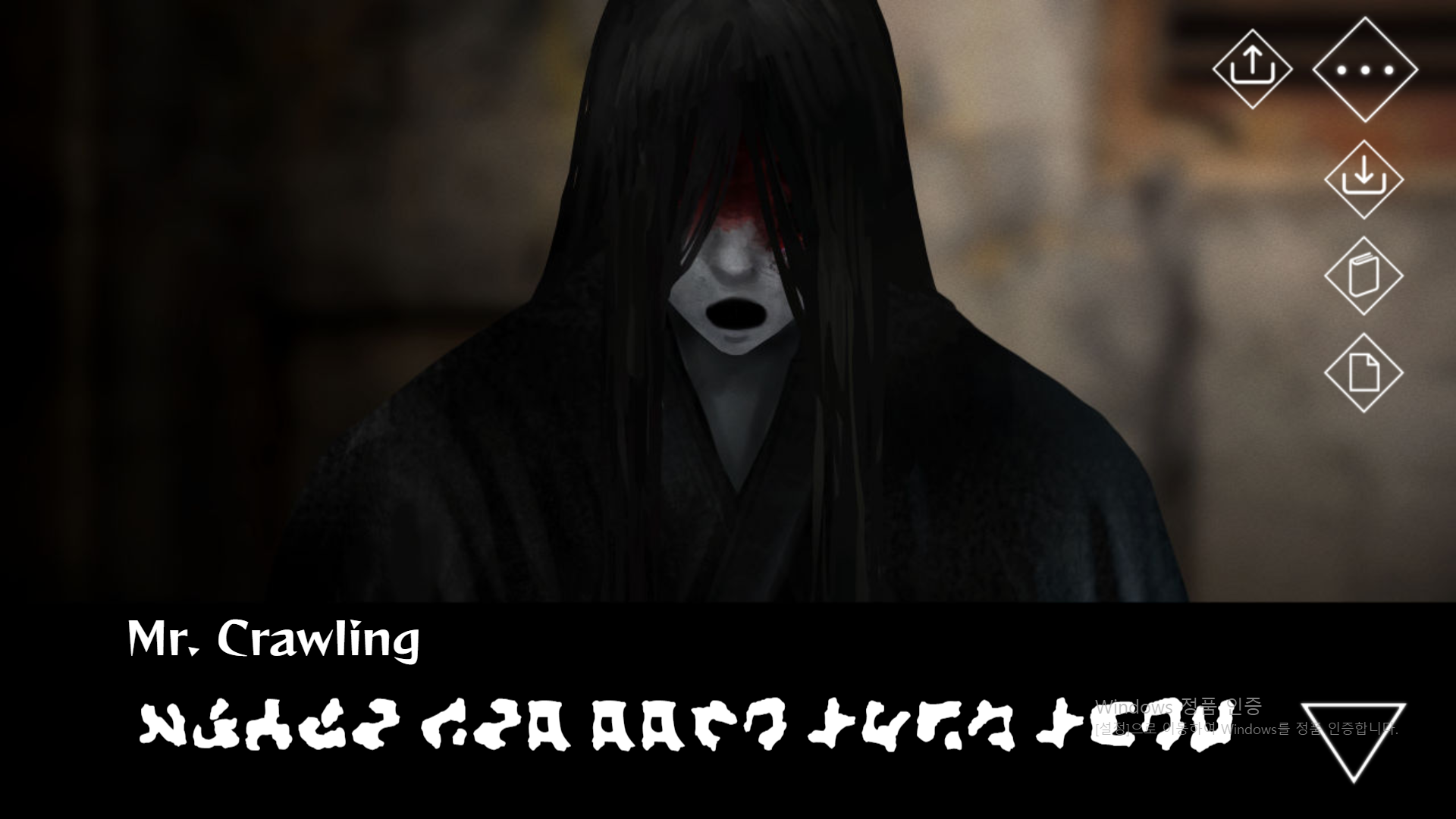 기어옴에게 뭔가를 묻는 주인공. 의미를 알 수 없다.