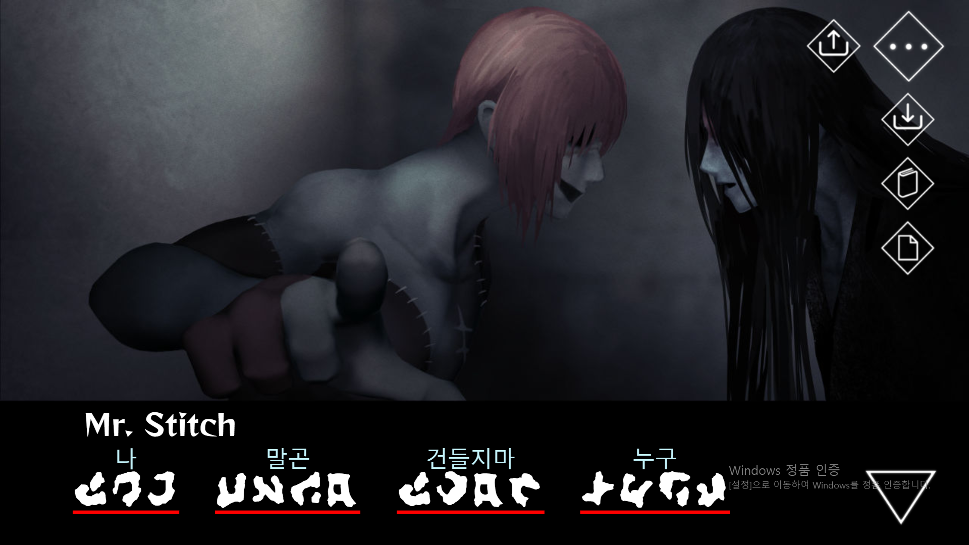 인형을 지나쳐 다른 방으로 오니 또 이상한 녀석이 앉아있다. 말을 걸어보자.
