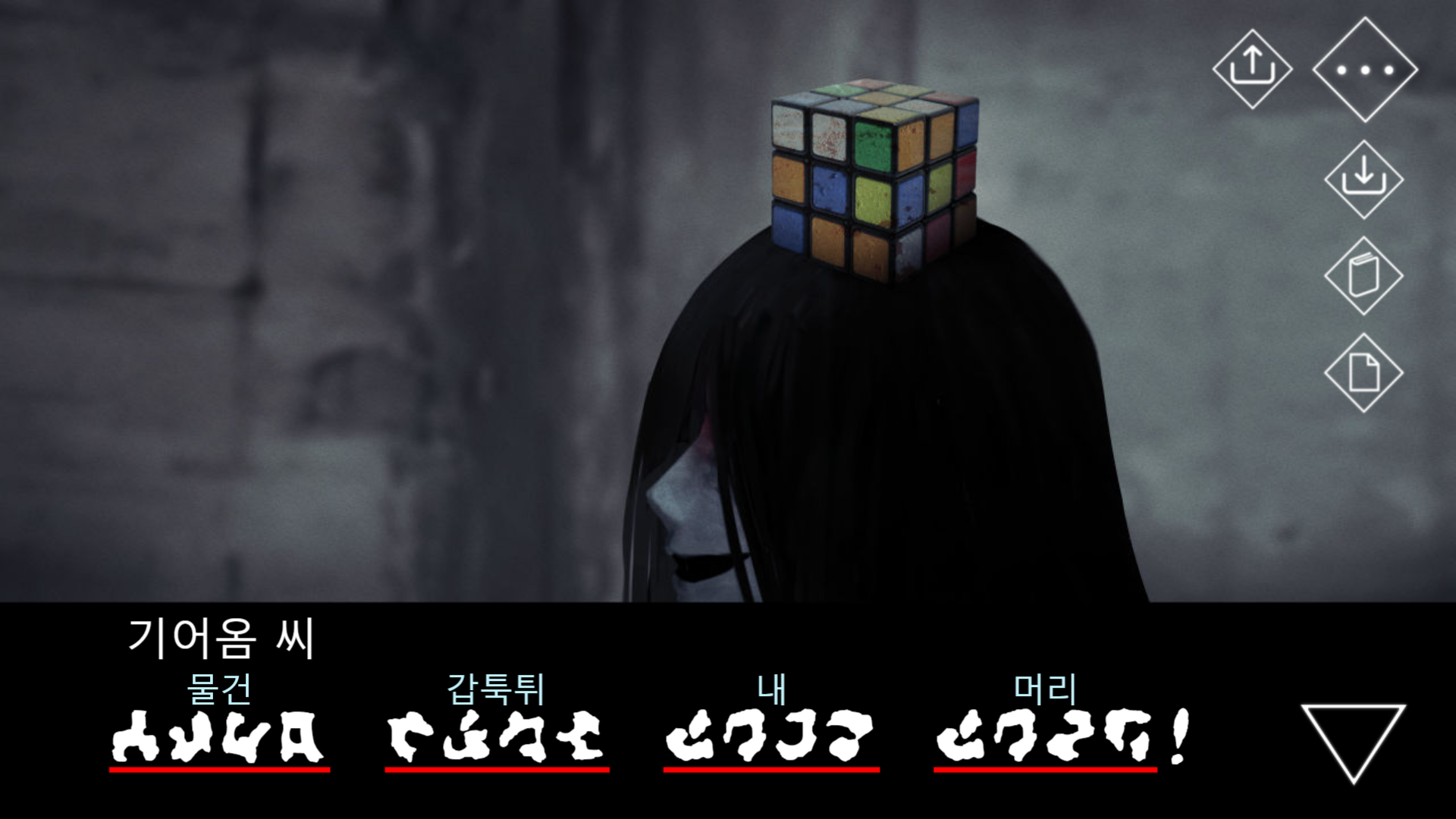 ...그리고 사라졌던 큐브를 김 씨의 머리 위로 이동시킨다.