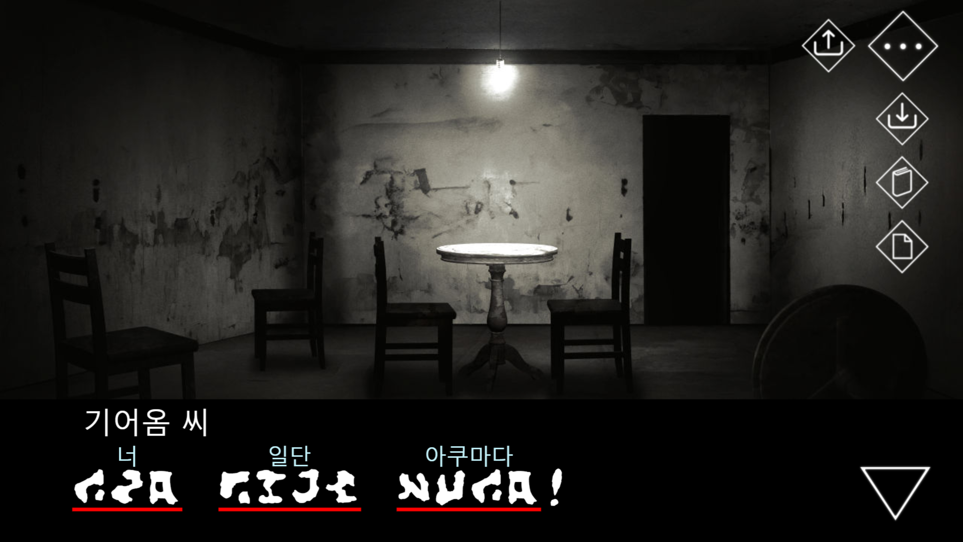 김 씨는 주인공에게 뭔가를 하지 말라고 하는데, 세 선택지 중 '하지 않는' 선택지는 단 하나뿐.