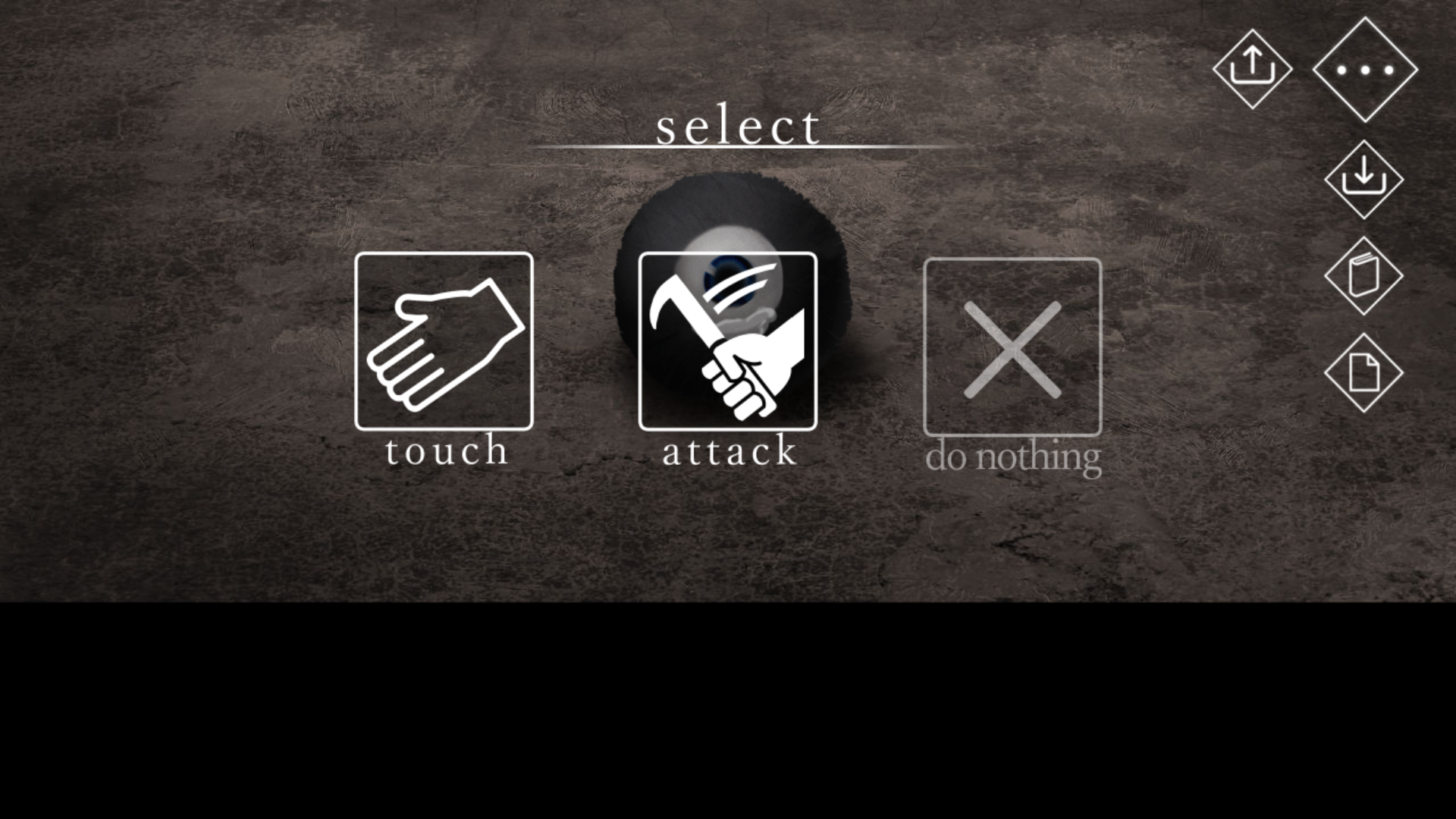 무사히 다음 방으로 넘어온 모양이다. 외눈의 까만 괴생명체가 있으니 다가가 보자.