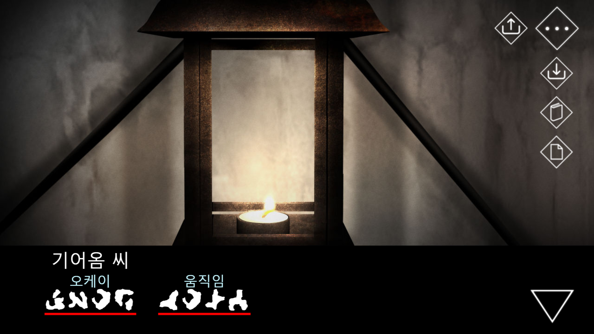 아무튼 랜턴에 불을 붙이고 나면, 기어옴 씨가 곧바로 주의를 준다.
