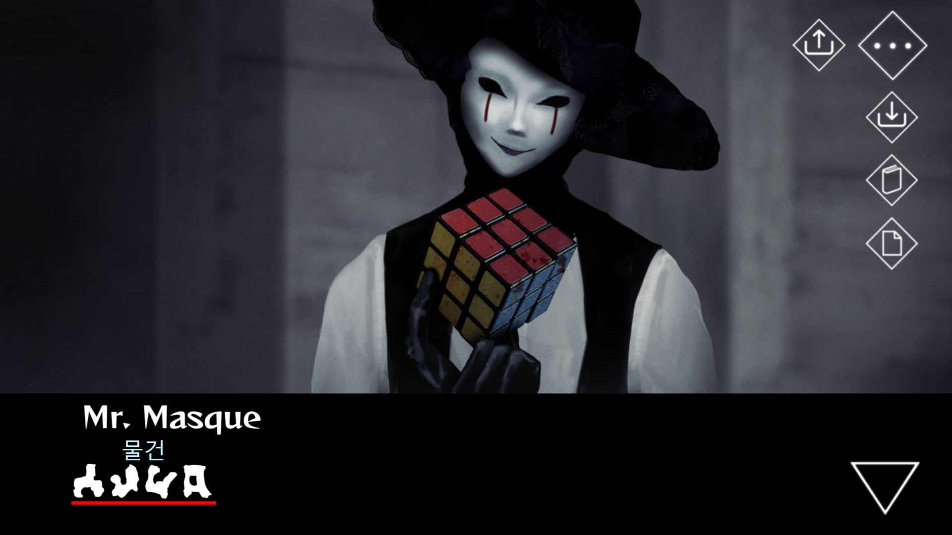 갑자기 큐브를 꺼내더니 천으로 덮는 뉴페이스 가면극 씨. 마술을 보여주려나 보다.