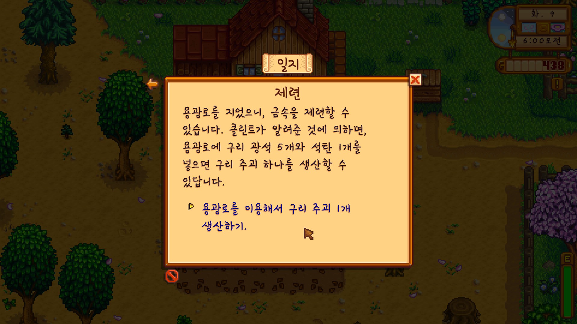 재료가 모여 용광로를 제작할 수 있게 되었다.