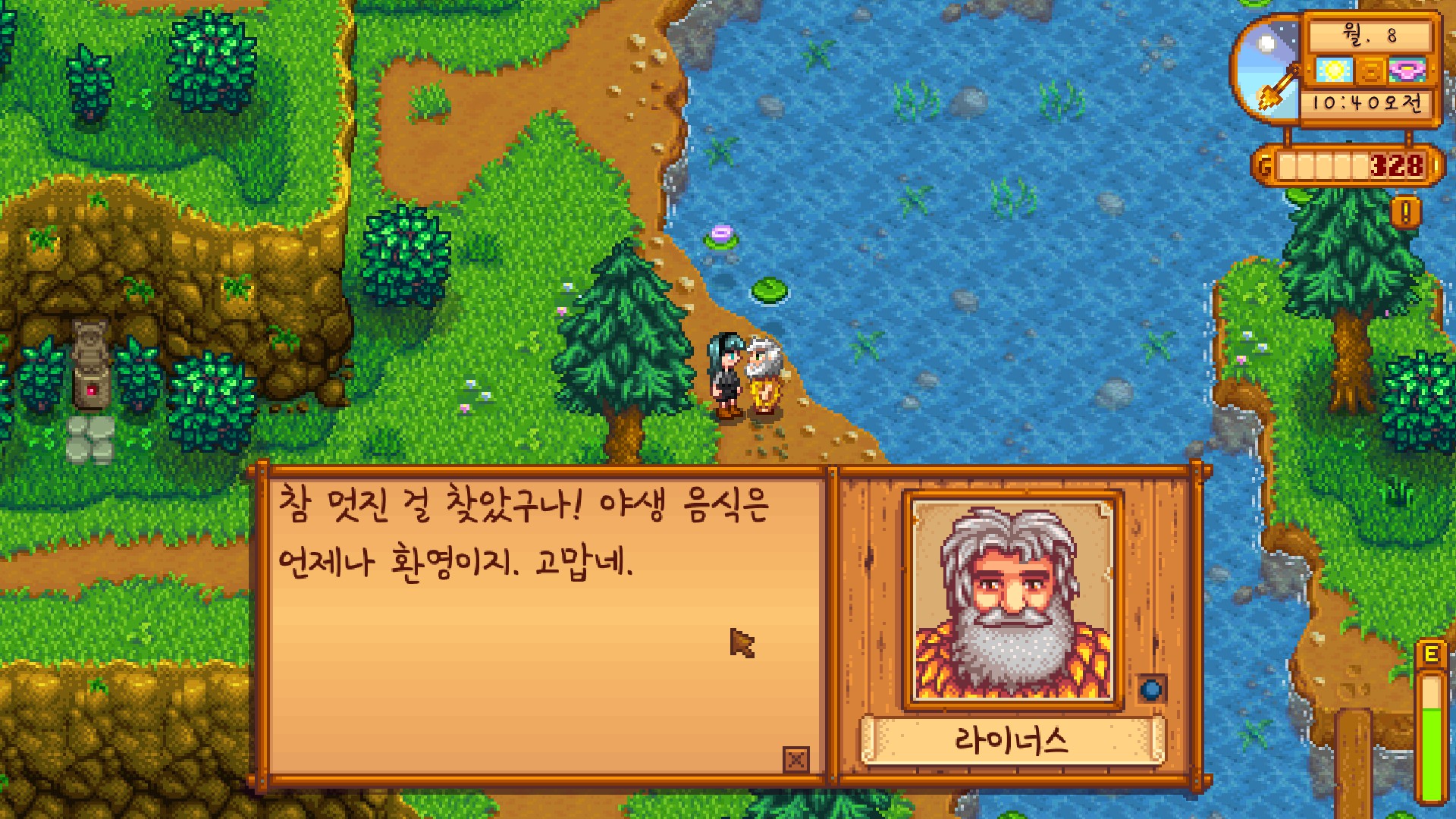 라이너스는 자연인 컨셉이라서 그런가 길바닥에서 주운 야생 음식을 좋게 받아들이는 듯한 모습이다.