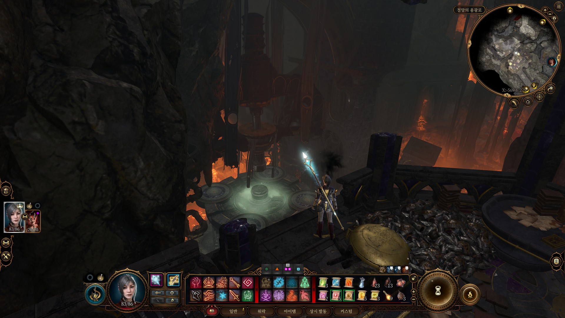 접근하면 용암에서 괴물이 튀어나오는데, 매 턴마다 피 회복을 하기 때문에 일메이터의 화살을 적극적으로 활용해 잡아 주었다.