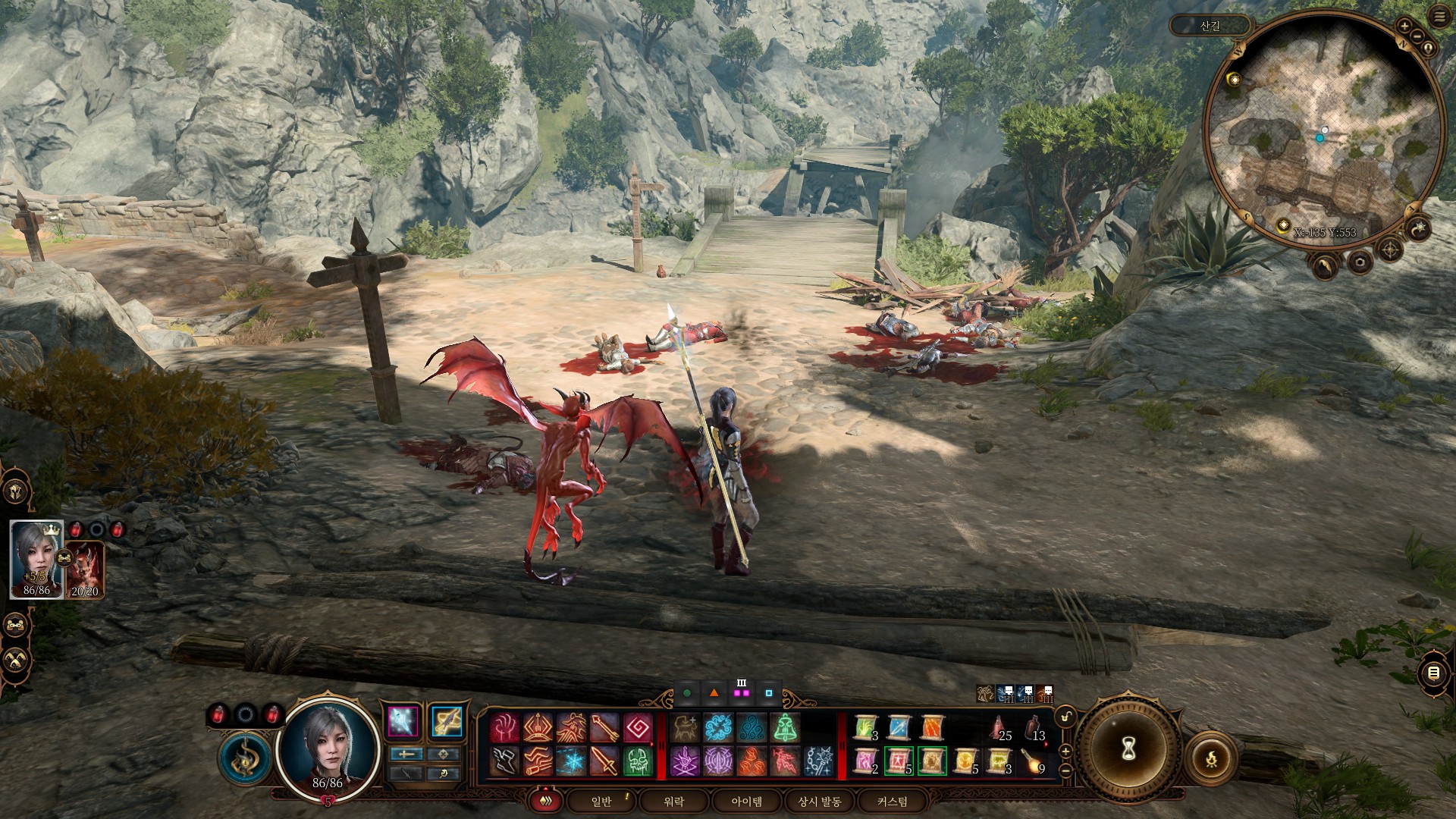 다시 산길로 돌아와 봤다. 레이젤은 죽어 있고, 몇몇 기스양키가 어슬렁대고 있다.